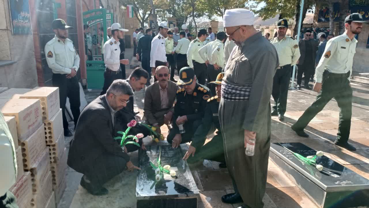 به مناسبت هفته فرماندهی انتظامی، آیین گلباران و غبارروبی مزار شهدا در دیواندره با حضور حاج ماموستا مرادی امام جمعه شهرستان دیواندره ، معاون سیاسی امنیتی واجتماعی فرمانداری ،دادستان ،ریاست دادگستری ، فرماندهان نظامی و انتظامی، مسئولان شهرستان و خانواده معظم شهدا برگزار شد.