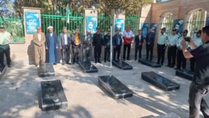 در ادامه مراسم، حاضران با حضور بر مزار شهیدان، قبور مطهر آنان را غبارروبی و با گل و گلاب عطرآگین کردند.